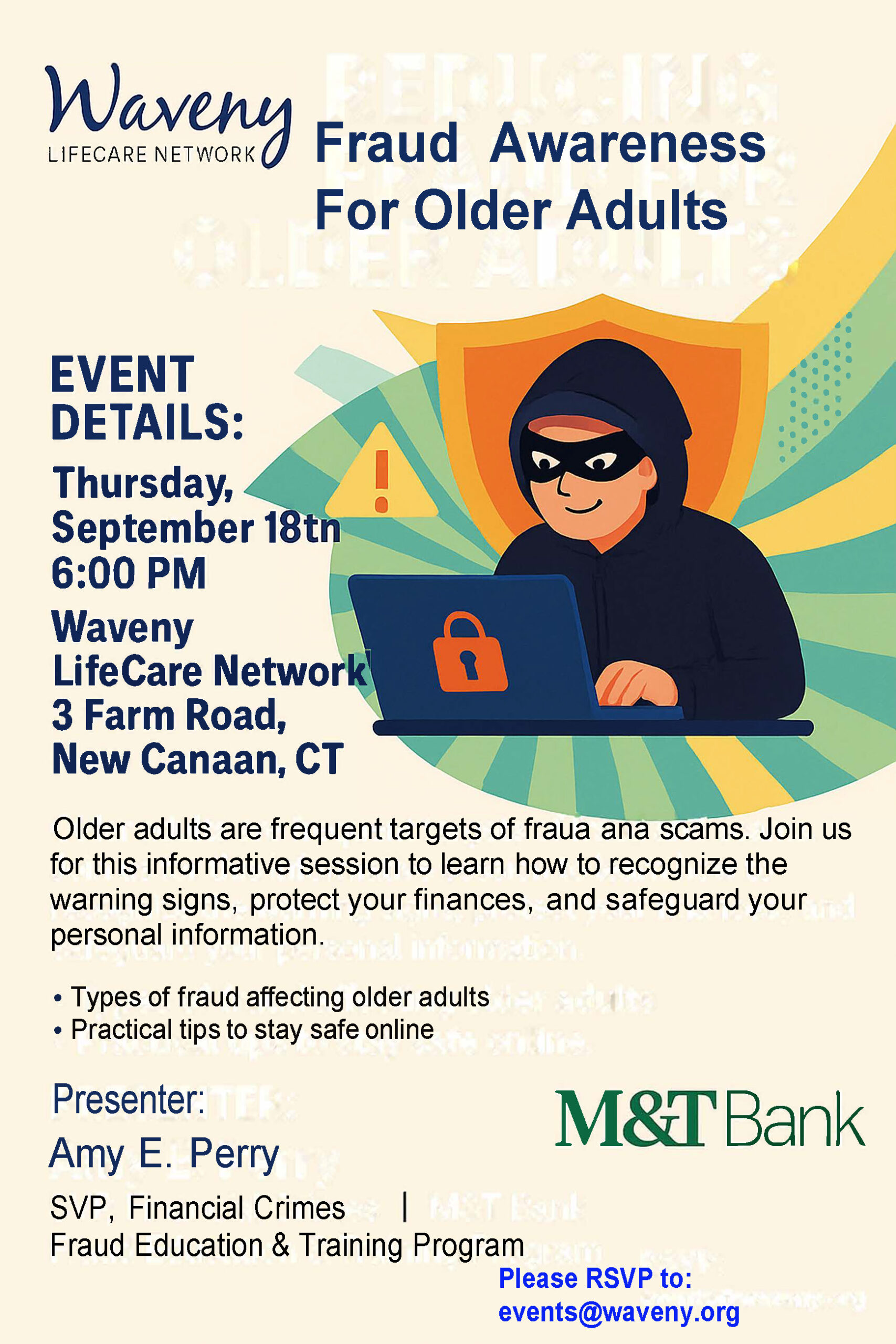 We invite you to a Fraud Awareness for Older Adults event presented by Amy. E. Perry, SVP, Financial Crimes / Fraud Education & Training Program, M&T Bank.